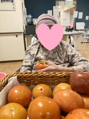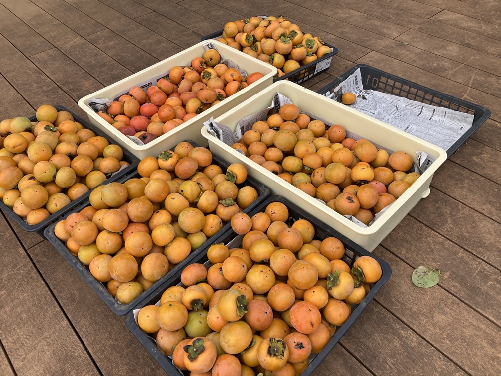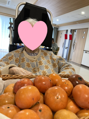 ゆうとの杜のテラス外にある柿の木の収穫作業を行いました~!