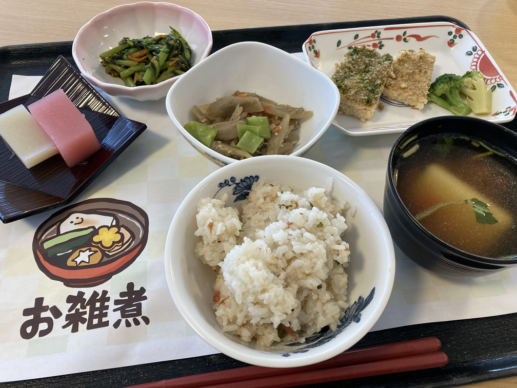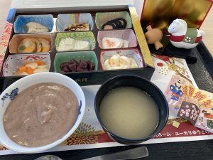 1/2・3日もお正月らしいメニューの3連続♪1/3はお餅風ムースを使用したお雑煮もご用意しました。安全なお餅でお正月気分を味わっていただけたのではないかと思います☆
