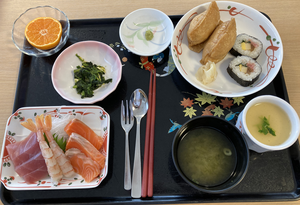右下の写真は嚥下困難食(ソフト食)の方のおせち弁当です。ソフト食の方にも常食と同じくお正月らしいおせち料理を楽しんでいただきました♪