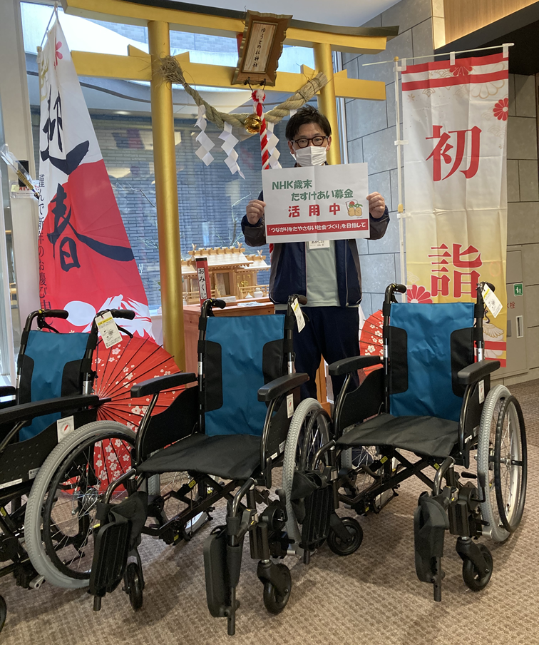 赤い羽根共同募金運動の一環であるNHK歳末たすけあい<第二次>助成で自動ブレーキ付き車椅子を3台購入させていただきました。