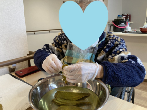 出来上がった桜餅はお茶と一緒に3時のおやつに召し上がって頂きましたが、とっても美味しかったようで・・・6個食べたツワモノも(笑)