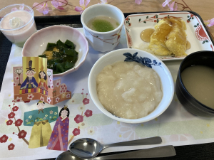 本日はひな祭りなので昼食・3時のおやつが行事食でした♪
